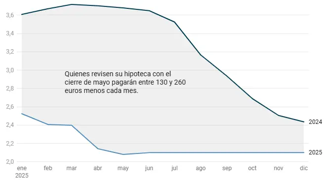 En el corto plazo, según este experto, «la tendencia bajista del euríbor está claramente ligada a la expectativa de que el BCE recorte los tipos de interés en su próxima reunión del 5 de junio. El mercado anticipa que, tras esta decisión, el euríbor podría situarse por debajo del 2% a finales de junio, rompiendo una barrera psicológica importante. Esta dinámica se explica porque el euríbor reacciona de forma adelantada a las decisiones de política monetaria y a las expectativas de los agentes económicos».